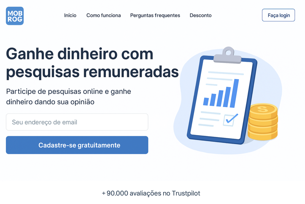 Diferente de muitos sites menores, o MOBROG possui um sistema sólido, pagamentos rápidos via PayPal e Skrill, suporte ativo e reputação internacional. Ele é conhecido por liberar pesquisas curtas e práticas, que podem ser completadas em poucos minutos.
