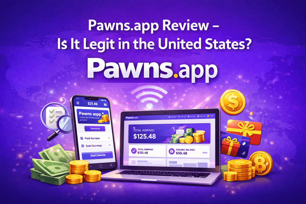 Pawns.app is a global online platform that allows users in the United States to earn extra income by completing paid surveys, offers, mobile games, and by enabling an optional passive internet sharing feature.