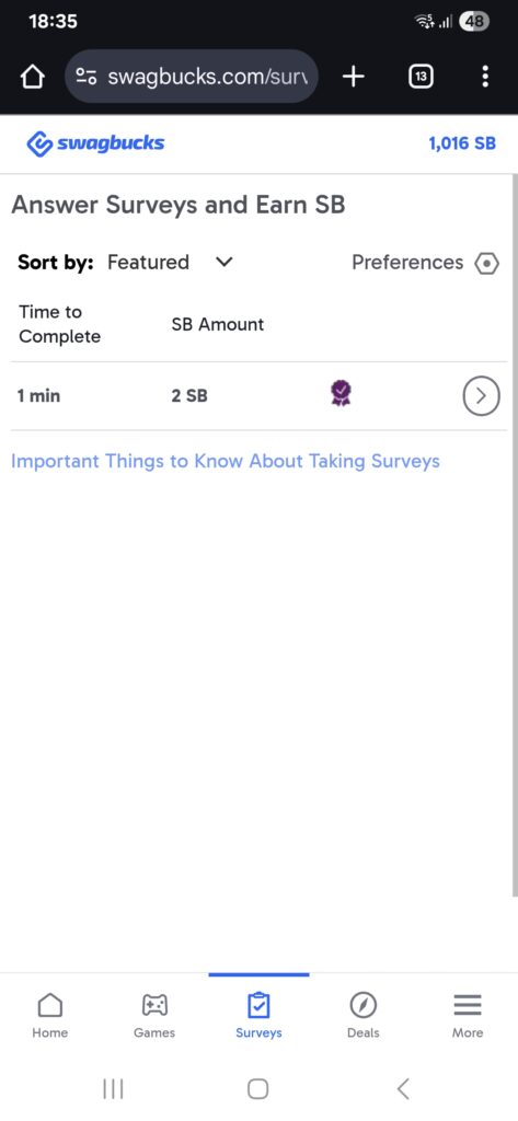 As pesquisas são atividades populares, variam entre 5 e 20+ minutos e podem pagar entre 40 e 300 SB dependendo da duração e complexidade.