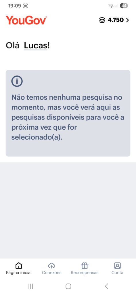 A plataforma funciona com um sistema de pontos. Cada pesquisa concluída gera entre 100 e 500 pontos em média, mas pesquisas mais longas podem render ainda mais. O grande diferencial da YouGov é a qualidade: você responde estudos reais, usados para planejamento estratégico e pesquisas sérias de opinião pública.